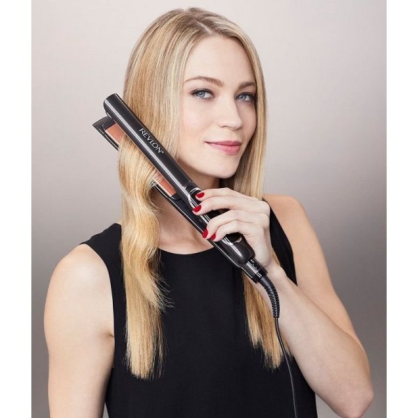 S Revlon žehličkou na vlasy dosiahnite hladký, rovný a lesklý účes za mimoriadne krátky čas vďaka rýchlemu 10-sekundovému zahriatiu. Vďaka XL Advanced Copper povrchu, ktorý poskytuje vynikajúci prenos tepla a odolnosť, čím sú vaše vlasy chránené pred poškodením vysokou teplotou. Táto žehlička na vlasy má zaoblené platne True Grip, pomocou ktorých si vytvoríte voľné kučery alebo vlny.
