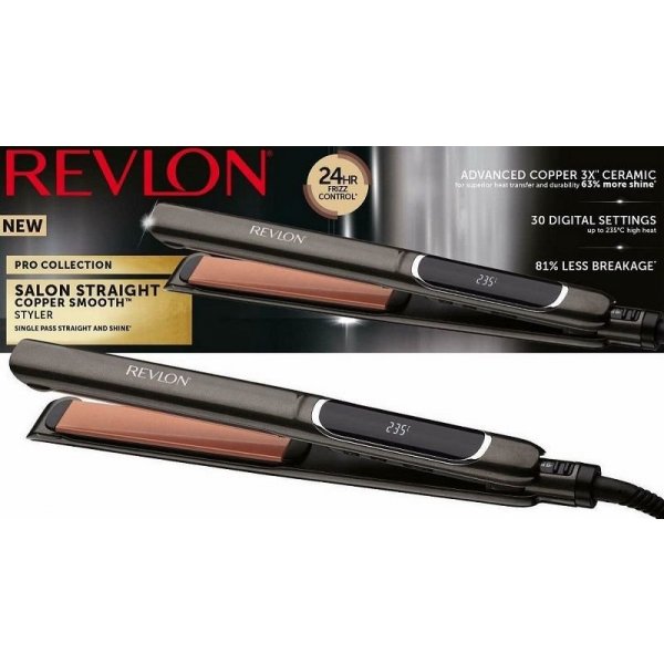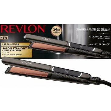 Vďaka žehličke na vlasyRevlon RVST2175E Salon Staight Copper Smooth jednoducho docielite dokonalý účes. Na digitálnom displeji s 30 variabilnými nastaveniami teploty od 80 °C do 235 °C si môžete zvoliť teplotu ideálnu pre váš typ vlasov. Žehlička je na použitie pripravená za 10 sekúnd. Pomocou XL Advanced Copper povrchu, ktorý poskytuje vynikajúci prenos tepla a odolnosť, čím sú vaše vlasy chránené pred poškodením vysokou teplotou. Žehlička disponuje funkciami ako systém tepelnej pamäti, kontrola vyblednutia farieb, zámok doštičiek a o bezpečnosť sa postará automatické vypnutie po 60 min.