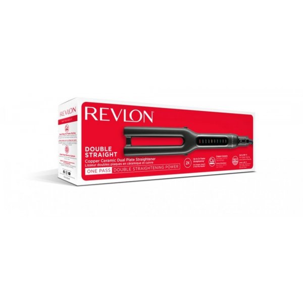 REVLON DOUBLE STRAIGHT je revolučná a bezkonkurenčná žehlička na vlasy, akú ste ešte nezažili! Inovatívny dizajn dvojitej dosky vytvára počas úpravy vlasov, jediným potiahnutím, dvojnásobnú silu narovnávania. Prvá platňa vlasy narovná, pričom bezprostredným prechodom druhej platne budú vaše vlasy hladšie a rovnejšie, než ako ste zvyknutý. Nedochádza k žiadnej strate tepla medzi prechodmi žehliacich plôch, čím sa dvojnásobne urýchľuje proces žehlenia a tým sa skracuje čas pôsobenia horúcich platničiek na vlasy až o 50%. Vlasy budú nielen hodvábne hladké, ale aj zdravšie.